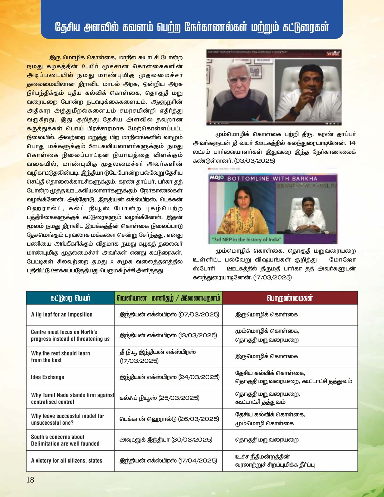 டிசம்பர் 2024 முதல் மே 2025 வரையிலான எனது ஆண்டுக்கு ஒருமுறை நடைபெறும் முன்னேற்ற அறிக்கையின் 18வது பதிப்பைப் பகிர்ந்து கொள்வதில் மகிழ்ச்சி அடைகிறேன்